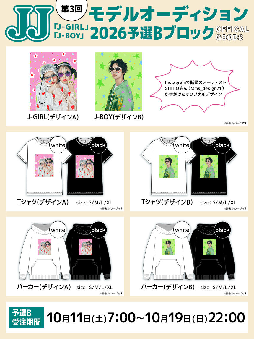 JJ「J-GIRL」「J-BOY」モデルオーディション2026 #国民的彼女#国民的彼氏 予選Bブロック オリジナル「Tシャツ」「パーカー」販売のお知らせ