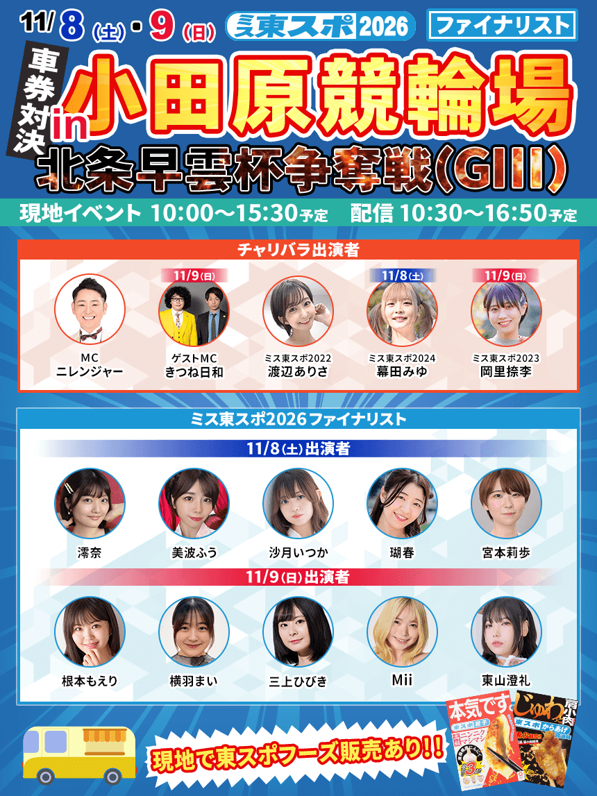 11月8日(土)・9日(日)開催 ミス東スポ2026ファイナリスト 車券対決 in 小田原競輪 北条早雲杯争奪戦(GⅢ) のお知らせ