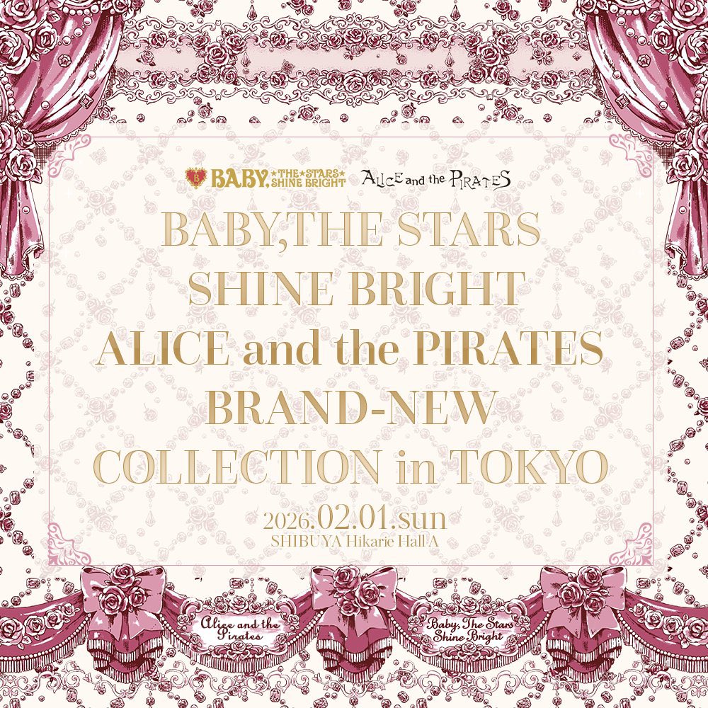 RT @BABY_THE_STARS: BABY,THE STARS SHINE BRIGHTとALICE and the PIRATESのファッションショーを2026年2月1日に渋谷ヒカリエにて開催することが決定しました✨