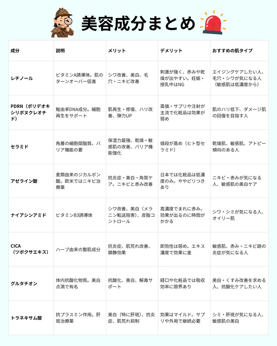 RT @taihosuruzoo_24: 美容成分のトリセツまとめ。成分理解せずに使うのは危険だよ(レチノール/PDRN/セラミド/アゼライン酸etc.) https://t.co/iGEWb66S0A