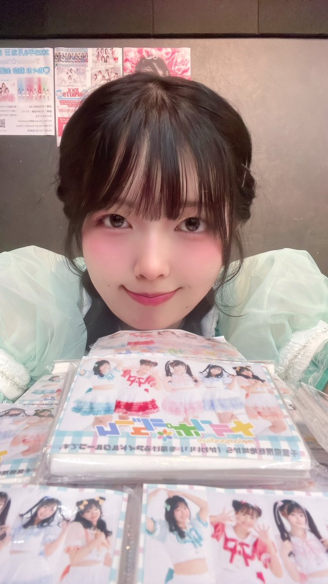 ライブありがとうございましたー! ティッシュとツーショットしたよ!! 鼻が気持ちよかったです👃 #めらぽむ #アイドル #ティッシュ配り https://t.co/wFGjvVZPGt