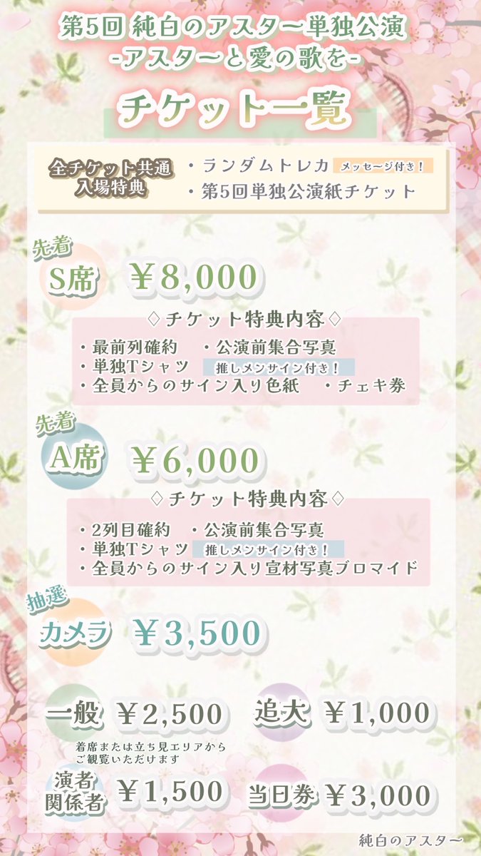 純白のアスター 第5回単独公演、《S席チケット》の販売を開始いたします!