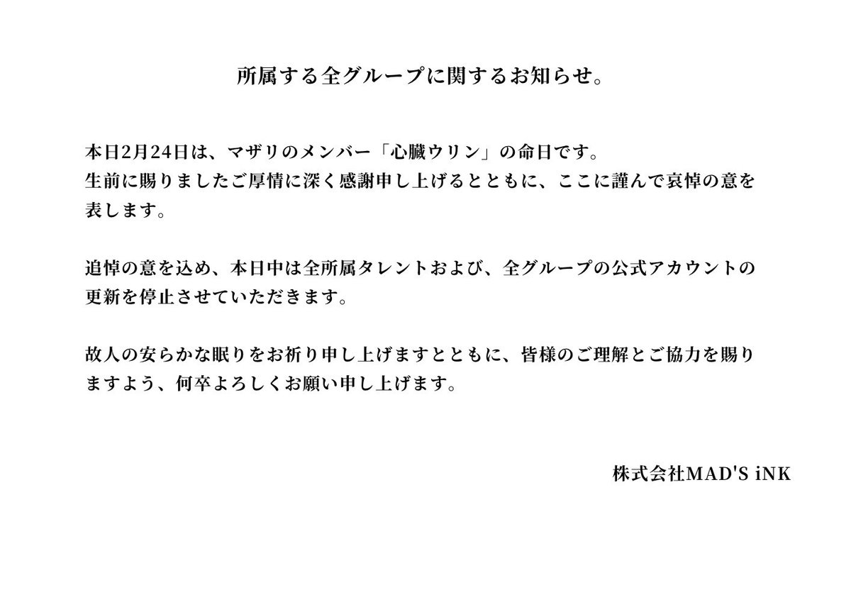 RT @MADS_iNK: 所属する全グループに関するお知らせ。 https://t.co/kETTCHci5X