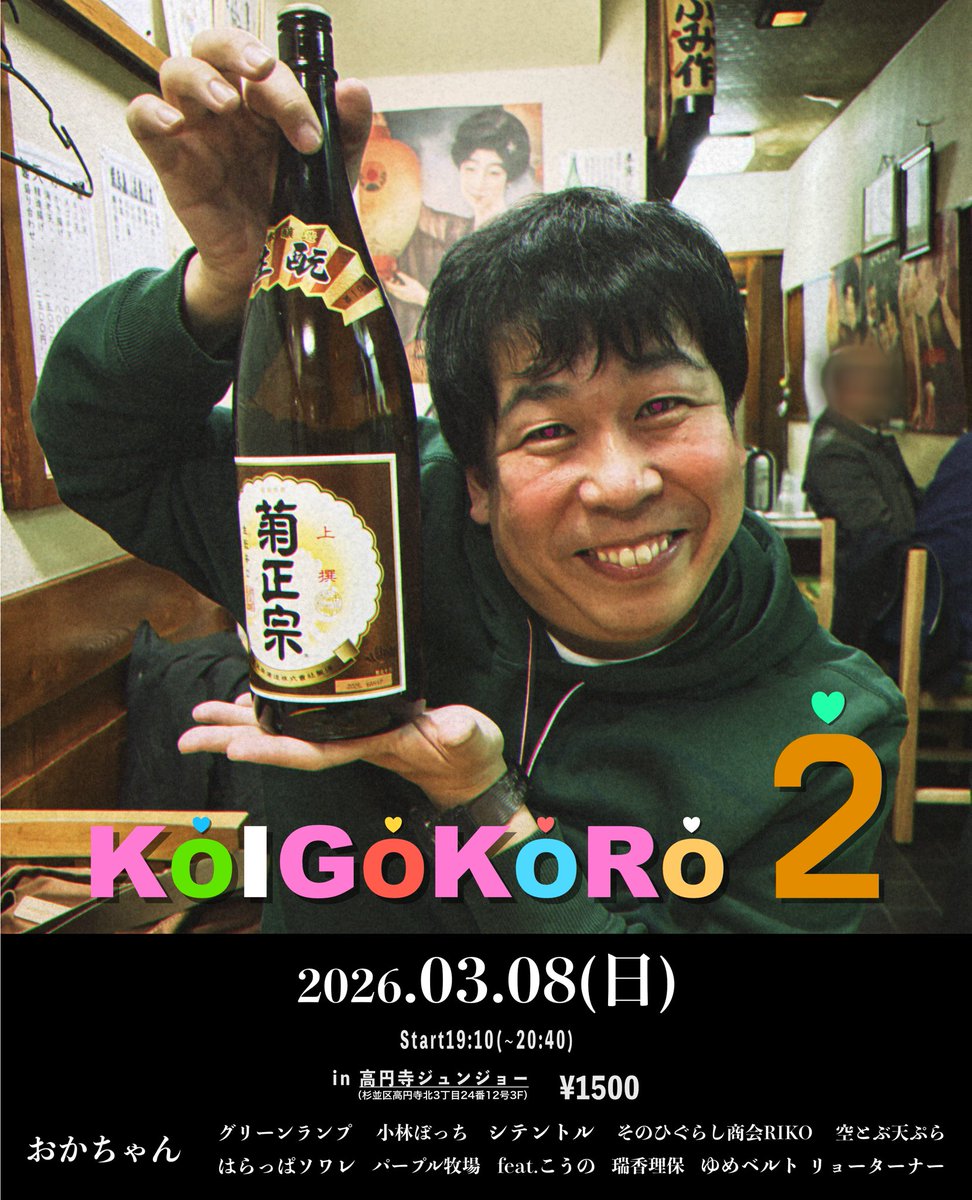 RT @yumemanakooo: 【特大告知】 ◆KOIGOKORO🩵2 -あれからどうなった!?- 2026年3月8日(日) 🕑開場19:00/開演19:10(終演20:40頃) 🏬 高円寺ジュンジョー 🎫 ¥1500 一体僕はここからどうしたらいいん?! ネタとおかち…
