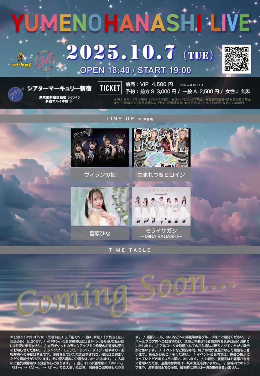【平日ライブ】 YUMENOHANASHI LIVE 1007@シアターマーキュリー 10月7日(火) 開場18:40 / 開演19:00 会 場→シアターマーキュリー新宿 生まれつきヒロイン目当て入場でチェキ券2枚🎁 チケット・詳細⬇︎ https://t.co/N5Lb4ue99V https://t.co/jL3CU4yAYh