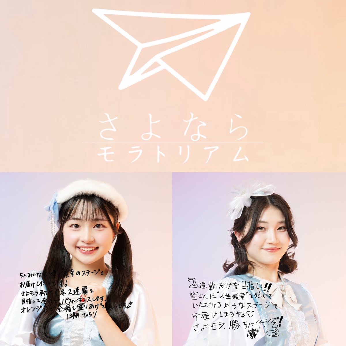 【🪽御礼🪽】 UNIDOL 2025-26 Winter 決勝戦 沢山の応援を本当にありがとうございました💫 これからも強いチームであり続けられるよう、 この悔しさを忘れず、今後も一層精進してまいります。 今後とも、さよならモラトリアムの応援 よろしくお願いいたします✈️ #さよモラ #ユニドル2526冬 https://t.co/2y3Fbqq56N