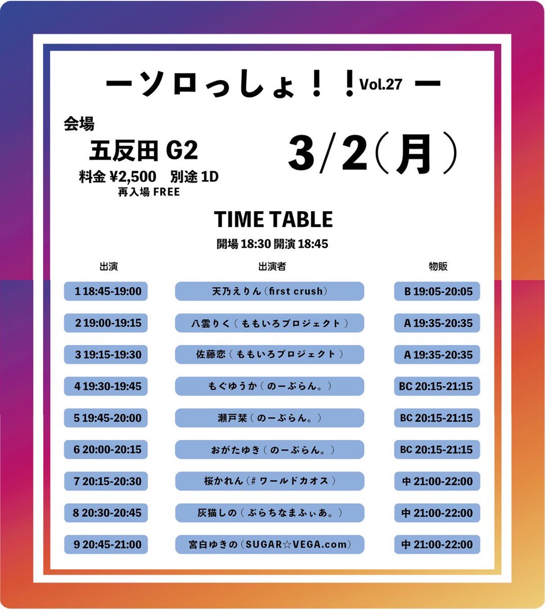 RT @noplan_idol: アメブロを投稿しました。 『3/2(月)五反田G2 ソロイベント《瀬戸栞、おがたゆき、もぐゆうかソロ出演!》』 #アメブロ https://t.co/4ZCfYRCSYp https://t.co/AtHeYhKA9t