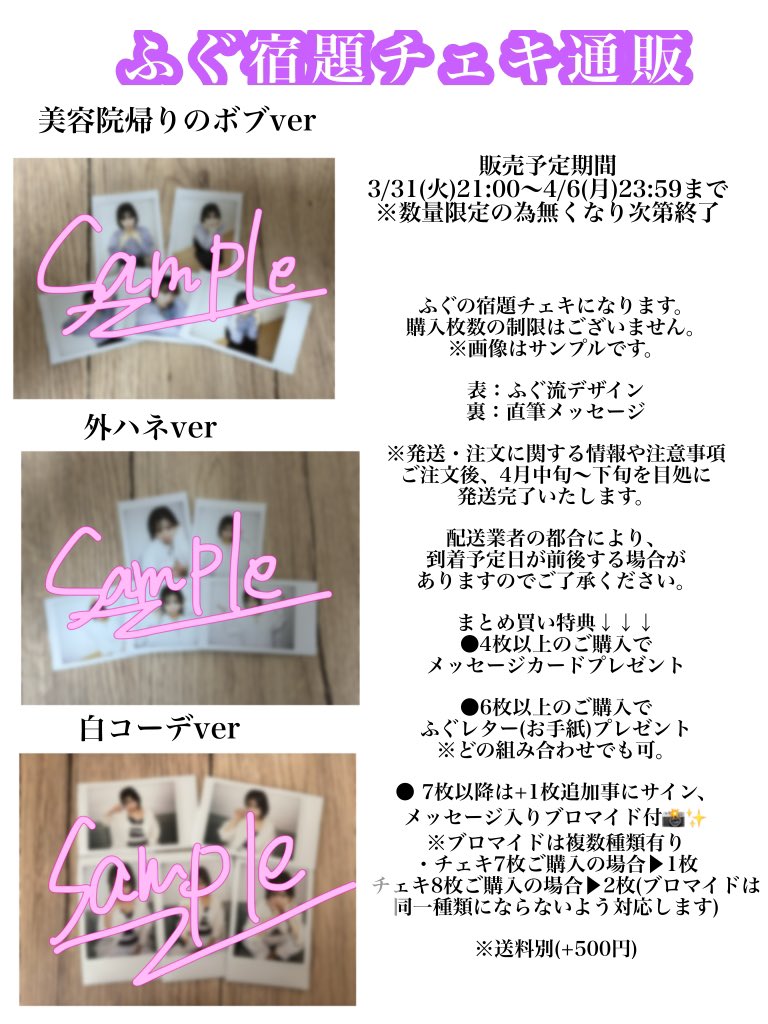 【🌸告知🌸】 桜が綺麗な季節になりました❀.*゚ チェキ通販「ふぐすとぁ」をBASEにて販売開始します🐡🌸 ボブになったふぐをいち早くみてほしいのだ〜🥳✂️ 販売期間 3/31(火)21:00~4/6(月)23:59まで ※sold out次第終了 ▶︎https://t.co/POwmBb5DCH https://t.co/OtI1AmPaWQ