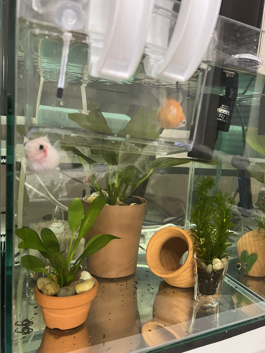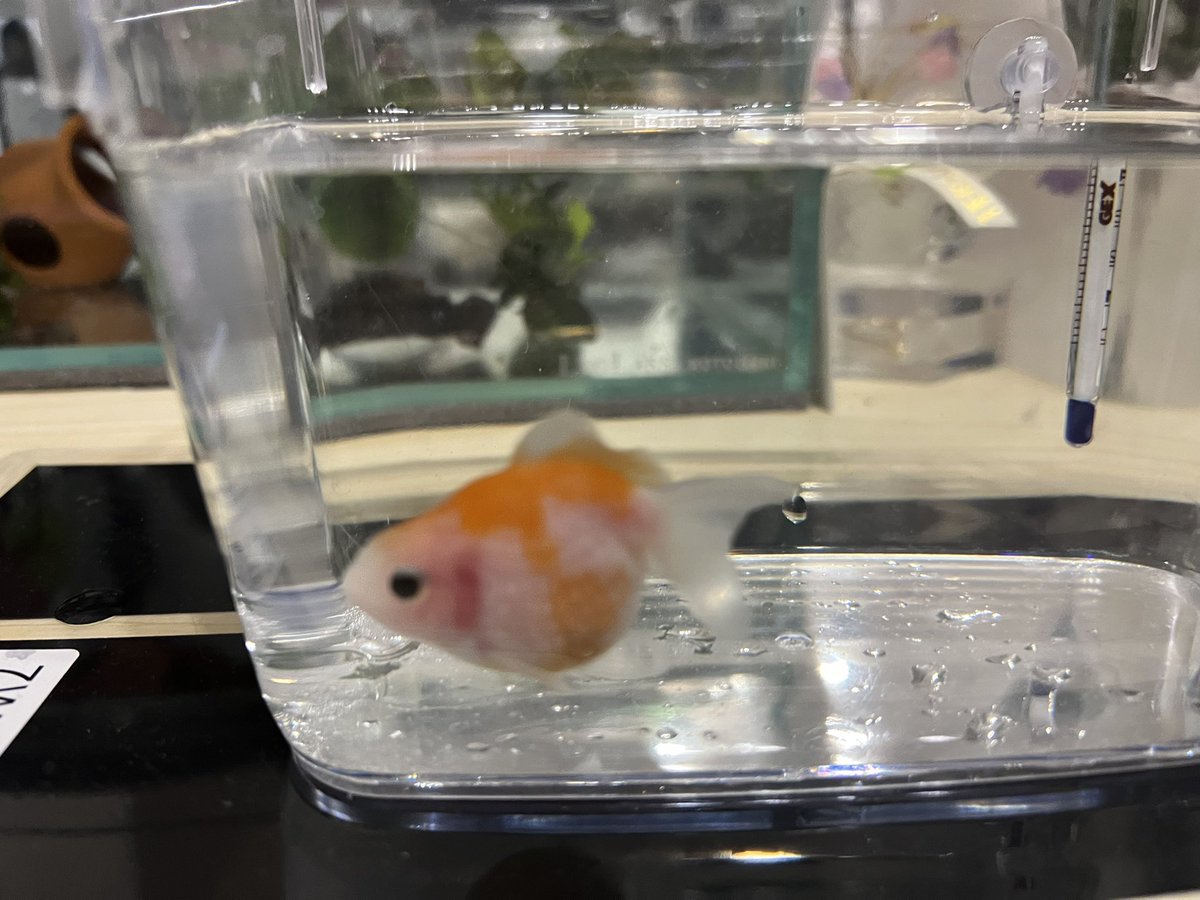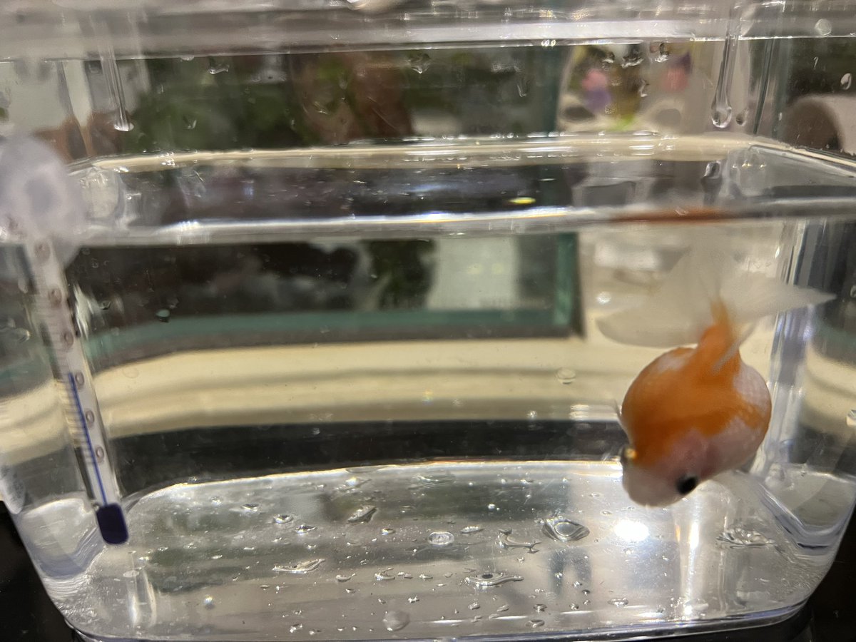 ぽんじゅの転覆がひどくて水深を浅くするため小さい水槽に隔離。はやく良くなってね。 #金魚飼育 #ピンポンパール https://t.co/pMsNmq7jdI