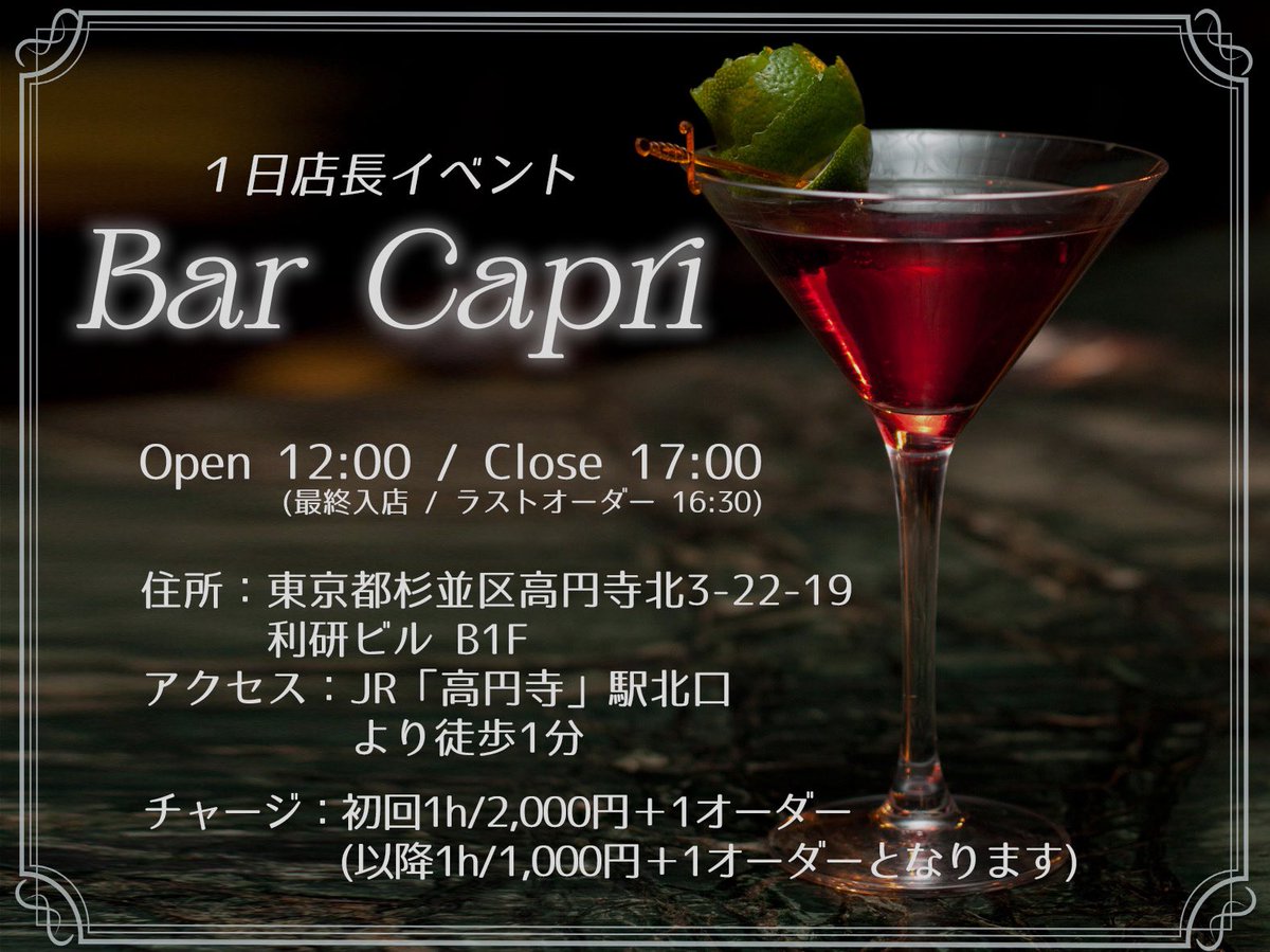 RT @BarCapri_staff: 『1日店長イベント🍹カプリ』 🧑🍳店長:山本真夢、高岡裕貴、植野祐美、小菅怜衣 🗓日にち:11月30日(日) 🗾場所: 東京都杉並区高円寺北3-22-19 利研ビルB1 JR高円寺駅から徒歩1分🚶♀️ ⏰時間:12:00 O…